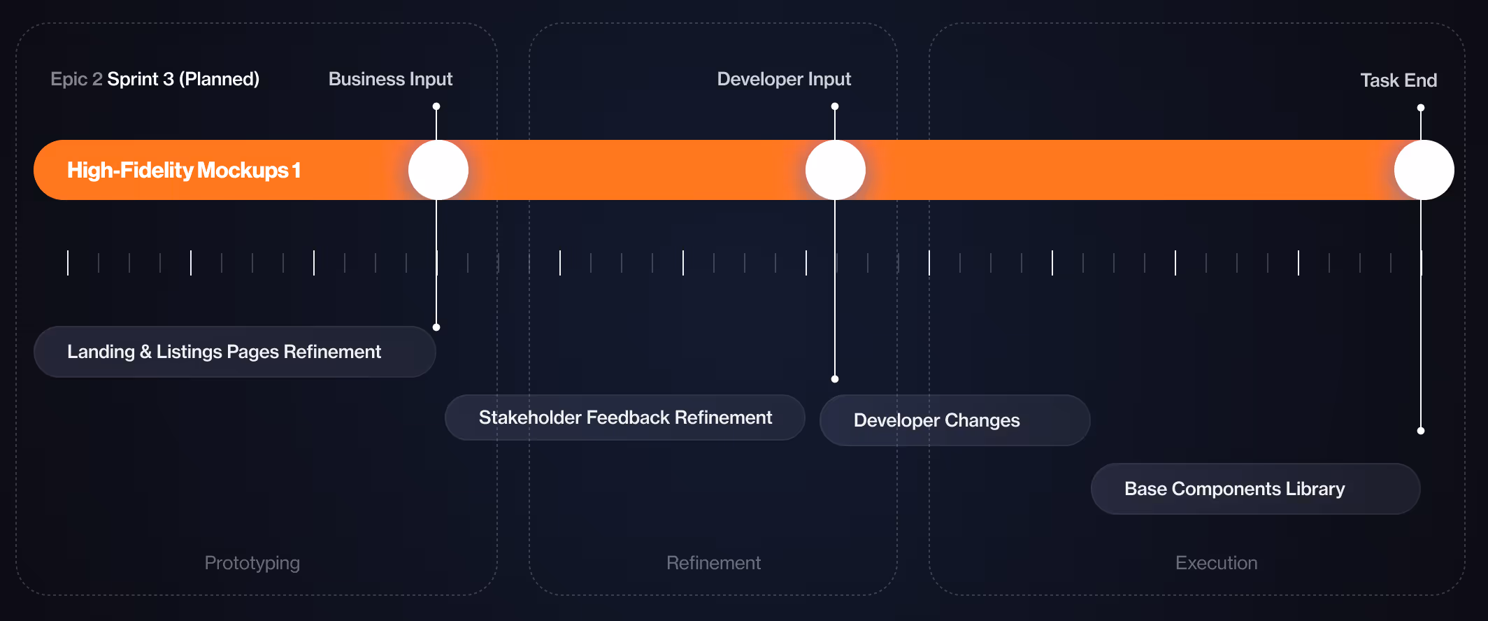 A deadline had been set for the end of February 2024 with only a runway of 5 months. I began assembling a Gantt in collaboration with the Director of Travel Technology, defining epics and sprints that are organized by the product offer, prioritizing by highest value.