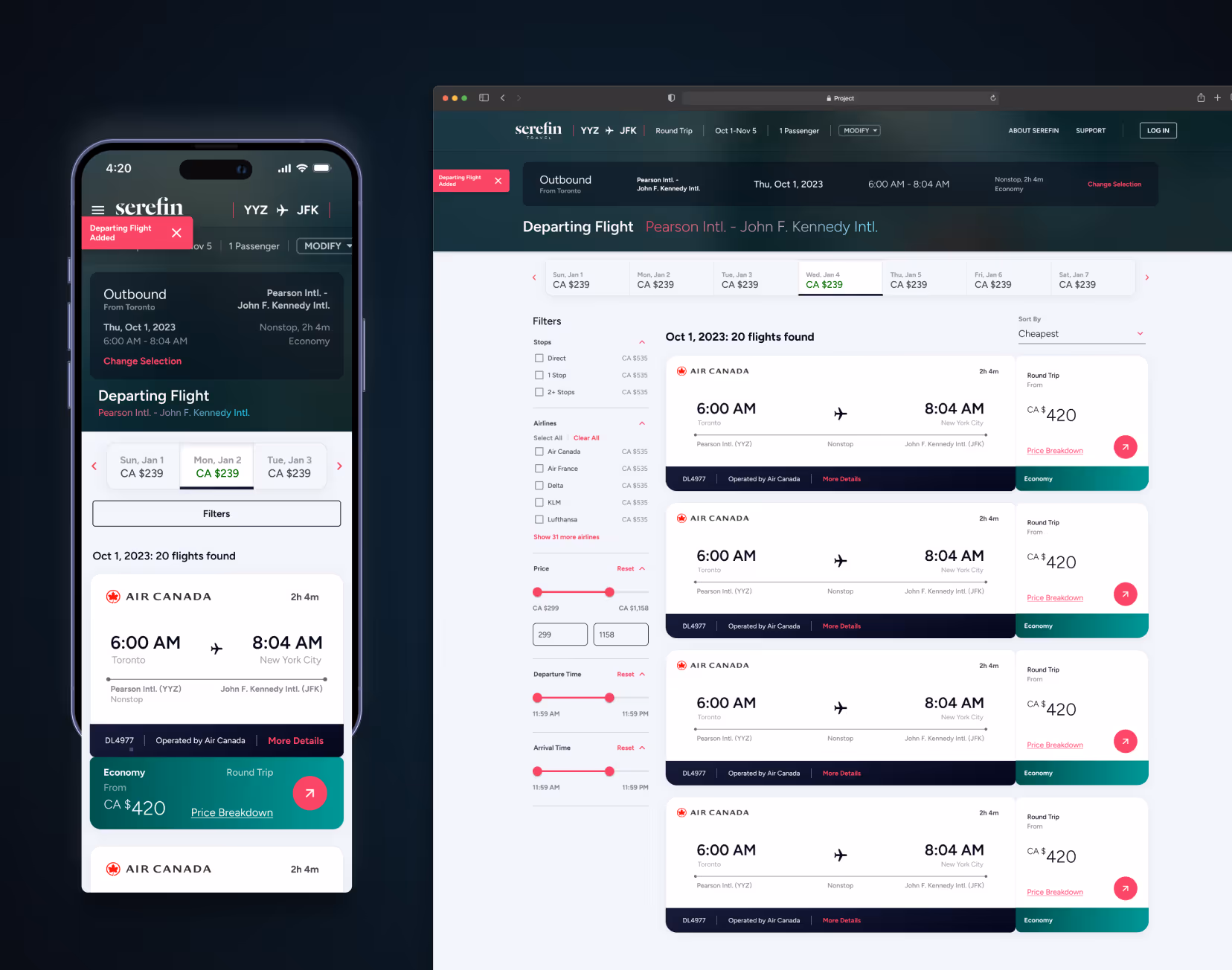 Designer (Lead), Serefin Travel — Interaction Design, Visual Design, User Flows, Rapid Prototyping